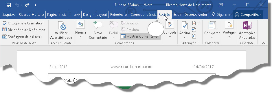 Em “Revisão”, poderá ser feito a análise de ortografia e gramática, assim como também incluir uma anotação. Ortografia e Gramática - ao clicar nesse botão, o Word percorrerá todo o texto grifando os possíveis erros ortográficos ou gramaticais que encontrar – é o primeiro botão da guia; Anotação - o botão “Novo comentário” possibilita que o usuário deixe uma anotação oculta em qualquer parte do arquivo