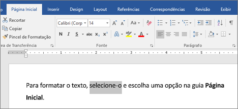 Na Aba “Página inicial”, você encontrará diversas opções de formatação, como por exemplo: Fonte, Parágrafo, Tabulação e Letras maiúsculas e minúsculas Fonte - todas as opções relacionadas à formatação de fonte estão contidas aqui; desde tipo de fonte, passando por estilo de fonte, letras, tamanho, cor, negrito, sobrescrito, subscrito até efeitos especiais como reflexo e sombra; Parágrafo - é possível modificar algumas características dos parágrafos, tais quais o espaçamento entre as linhas, o recuo e os marcadores; Tabulação - clicando em qualquer lugar da “régua” que fica acima da página, aparecerá o botão de tubulação, que poderá ser usado para alterar o alinhamento na linha ou parágrafo desejado; Maiúsculas ou Minúsculas - clicando no botão “Shift” no seu teclado, alterará a letra para maiúsculas, e reciclando, retornará ao estado minúsculo.